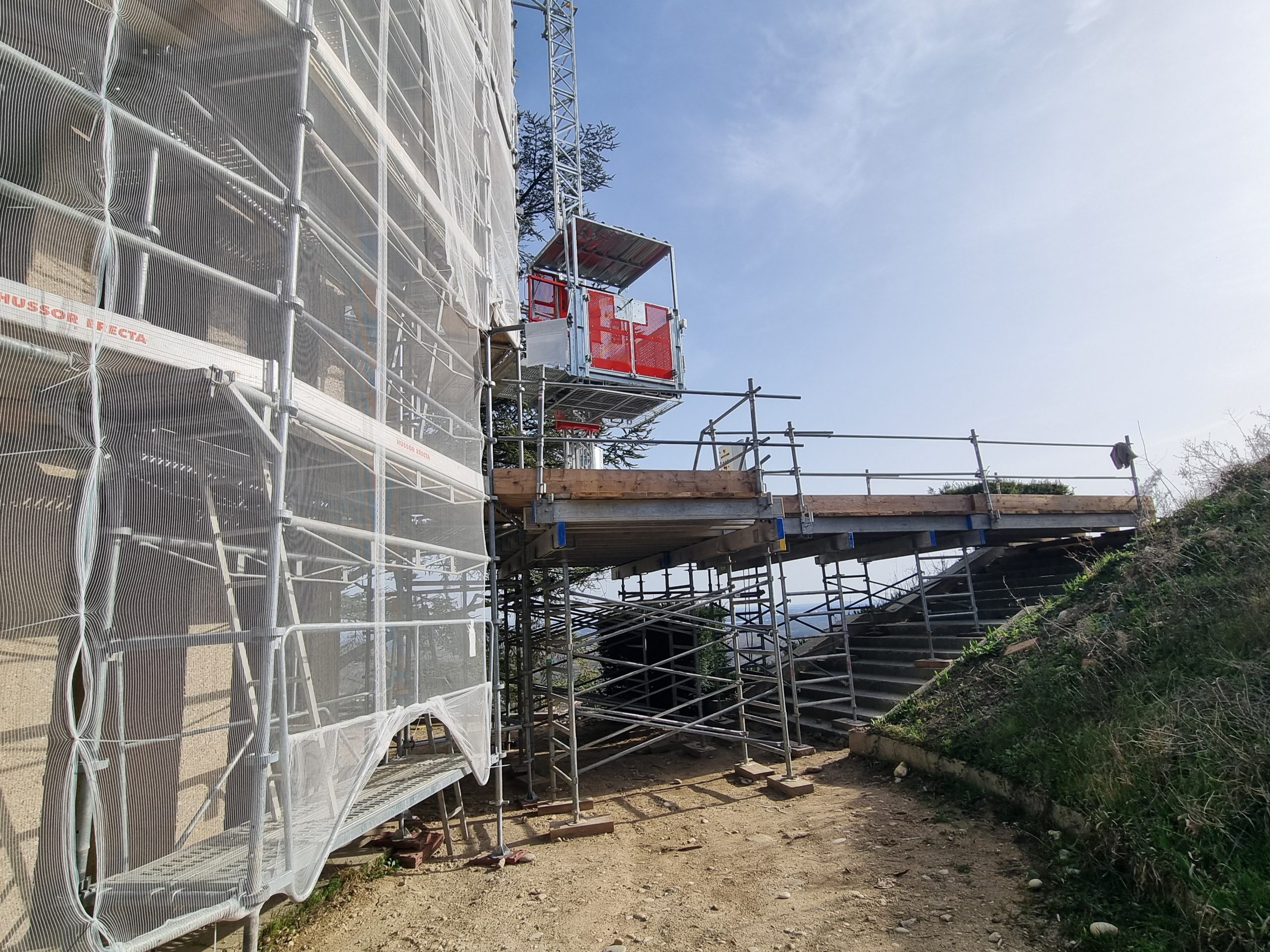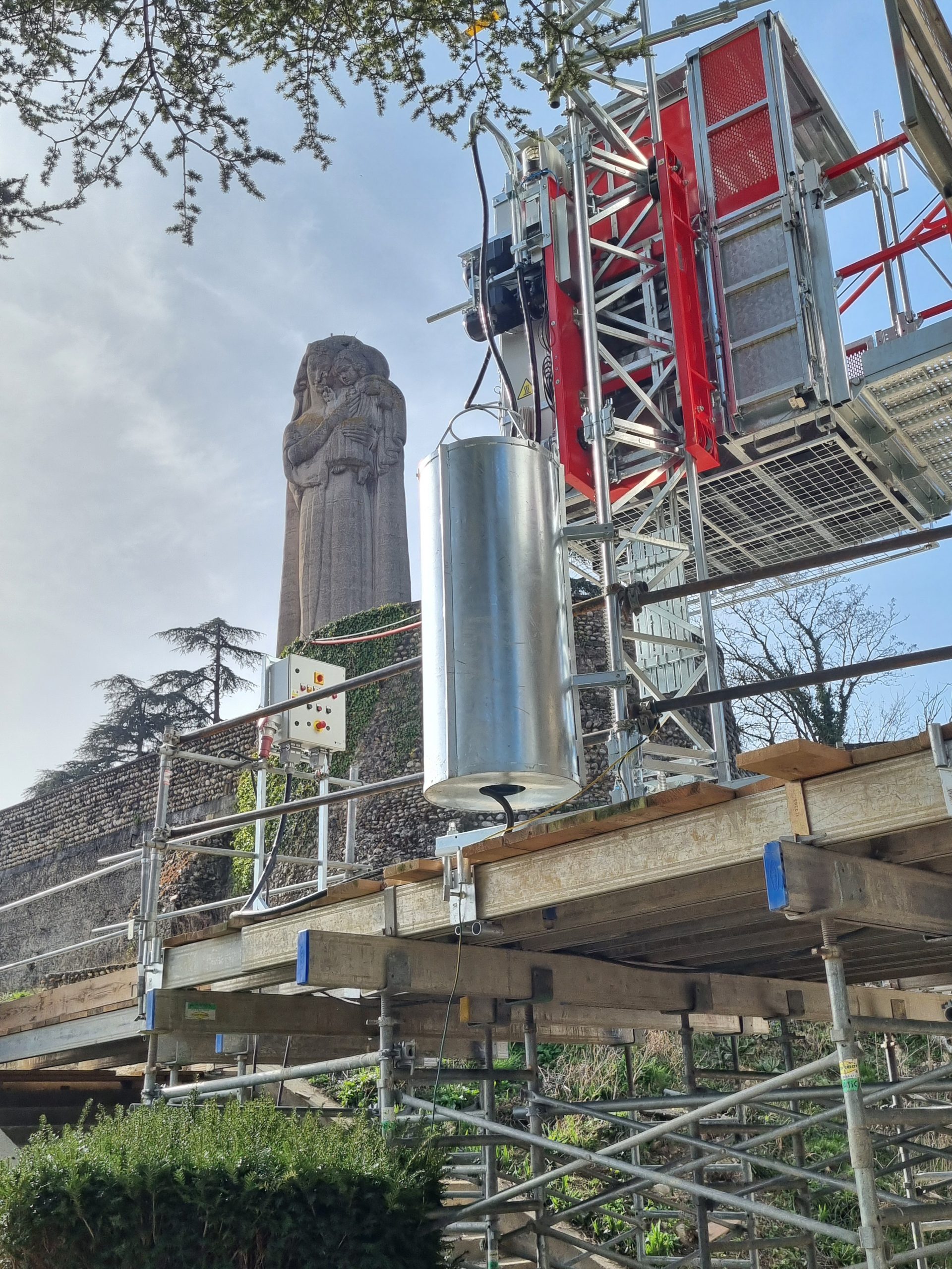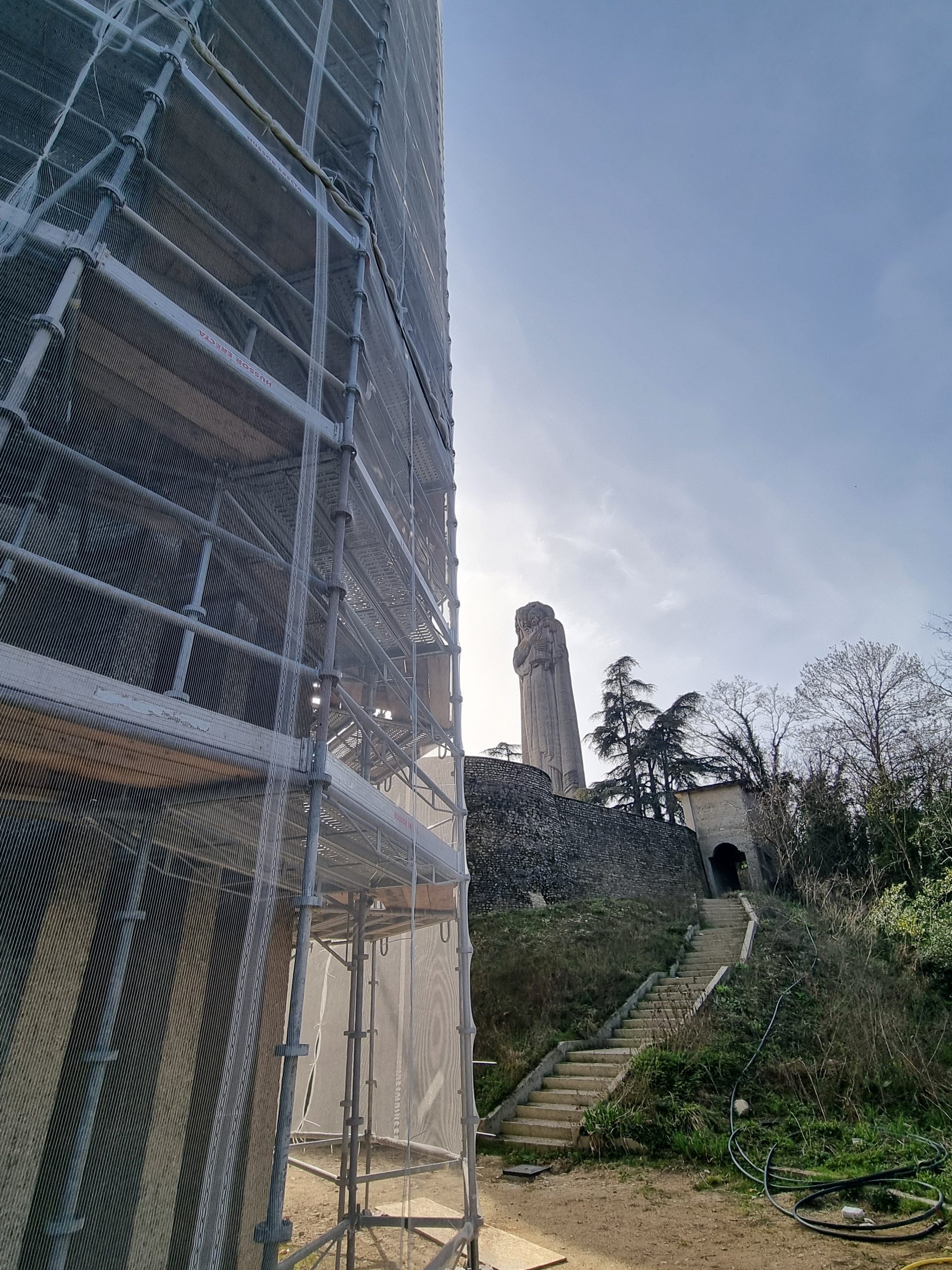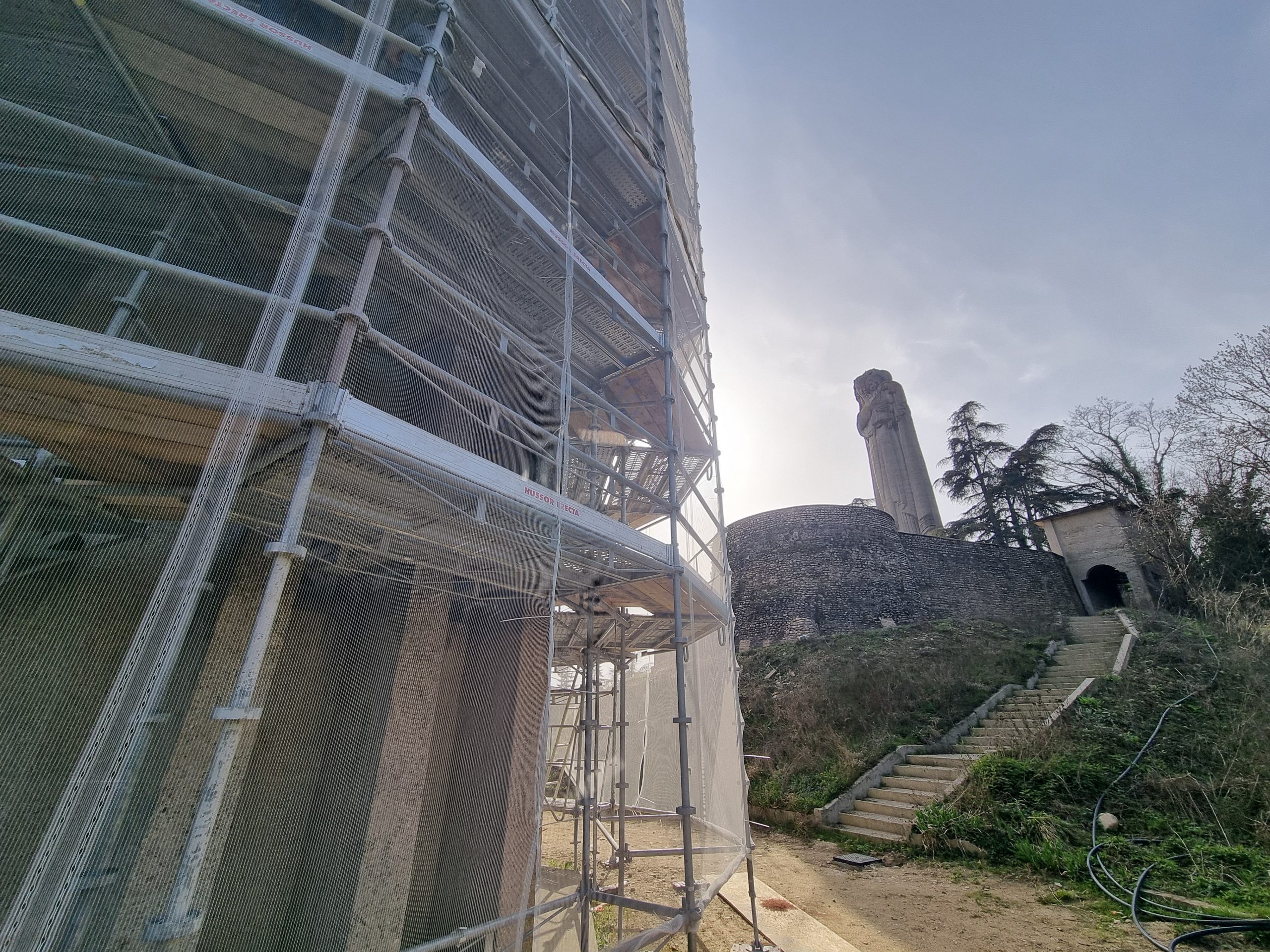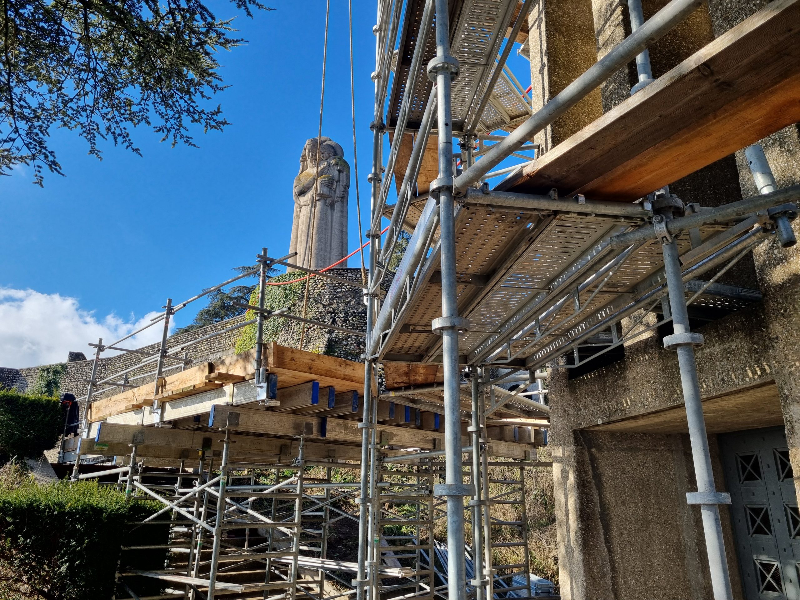 Les prochaines étapes du chantier prévoient notamment le démontage de cet échafaudage, avant sa réinstallation autour de la statue de la Madone.