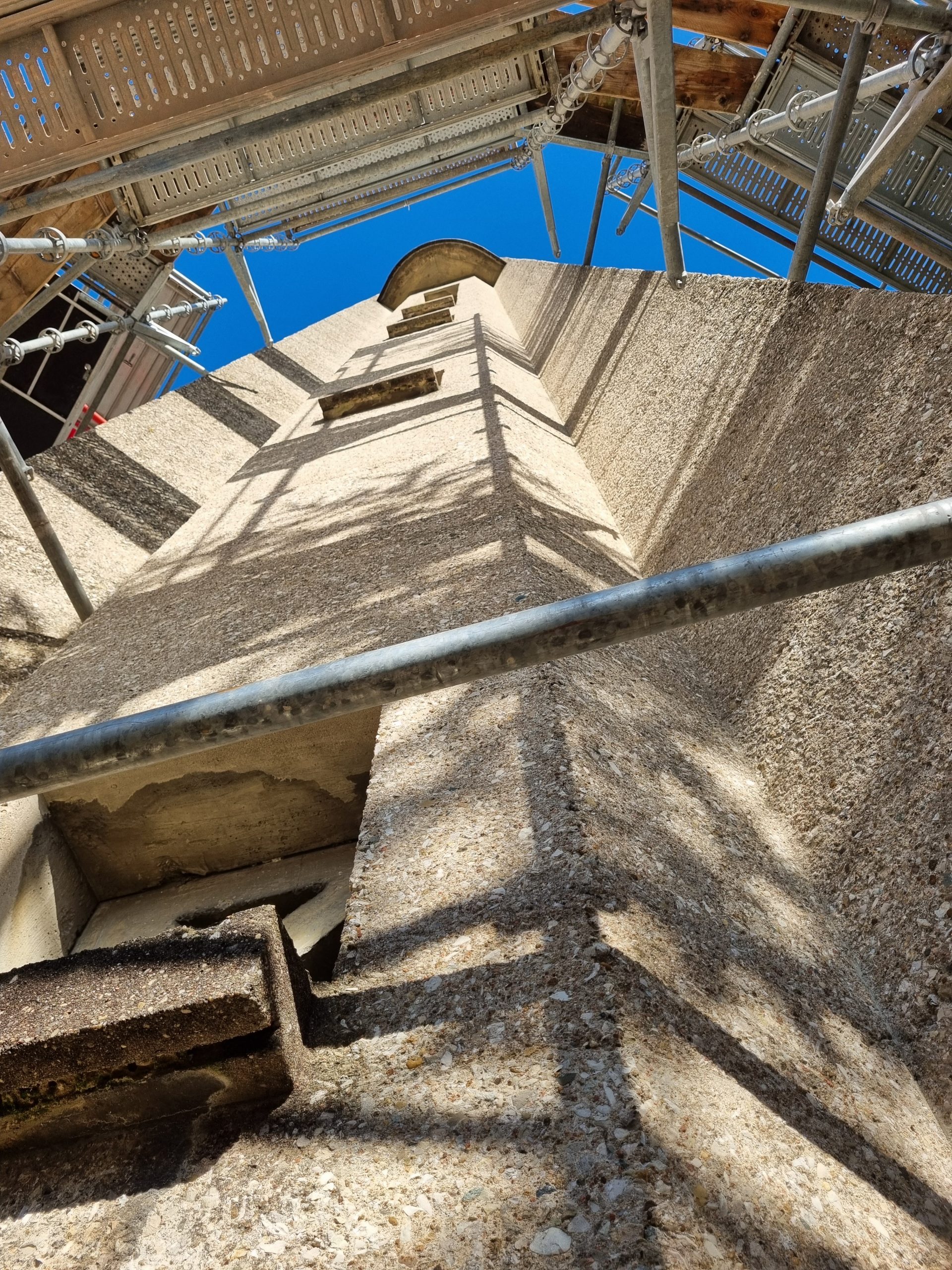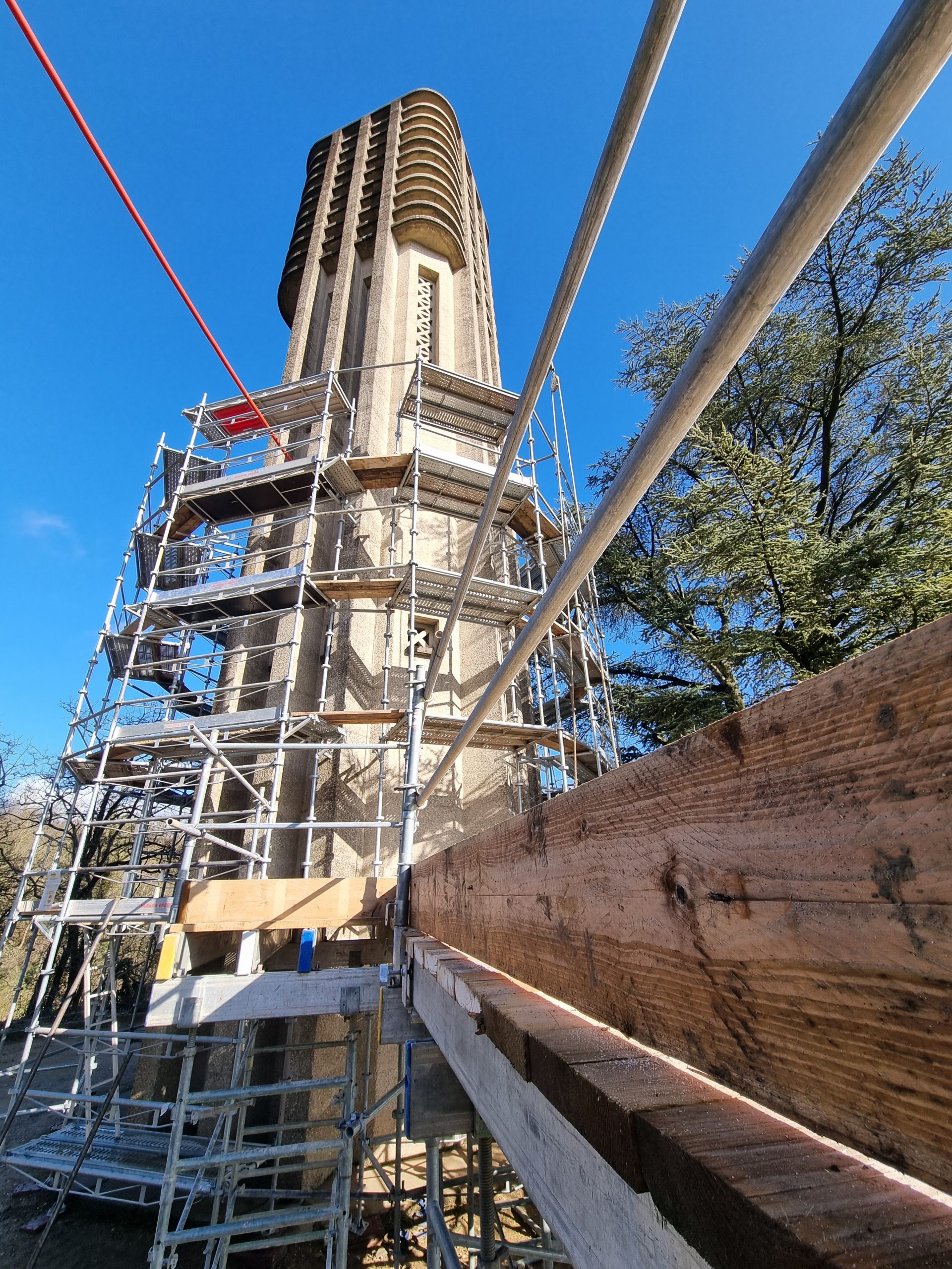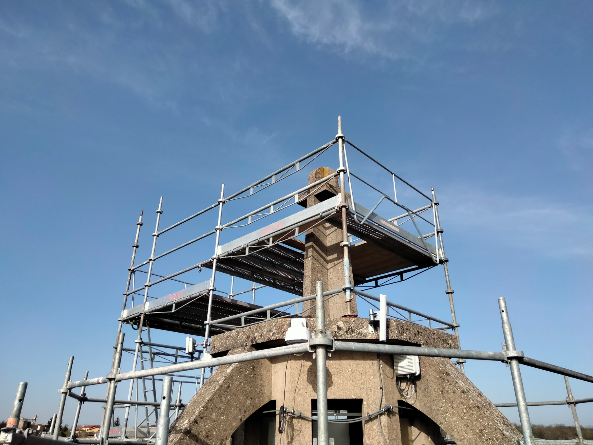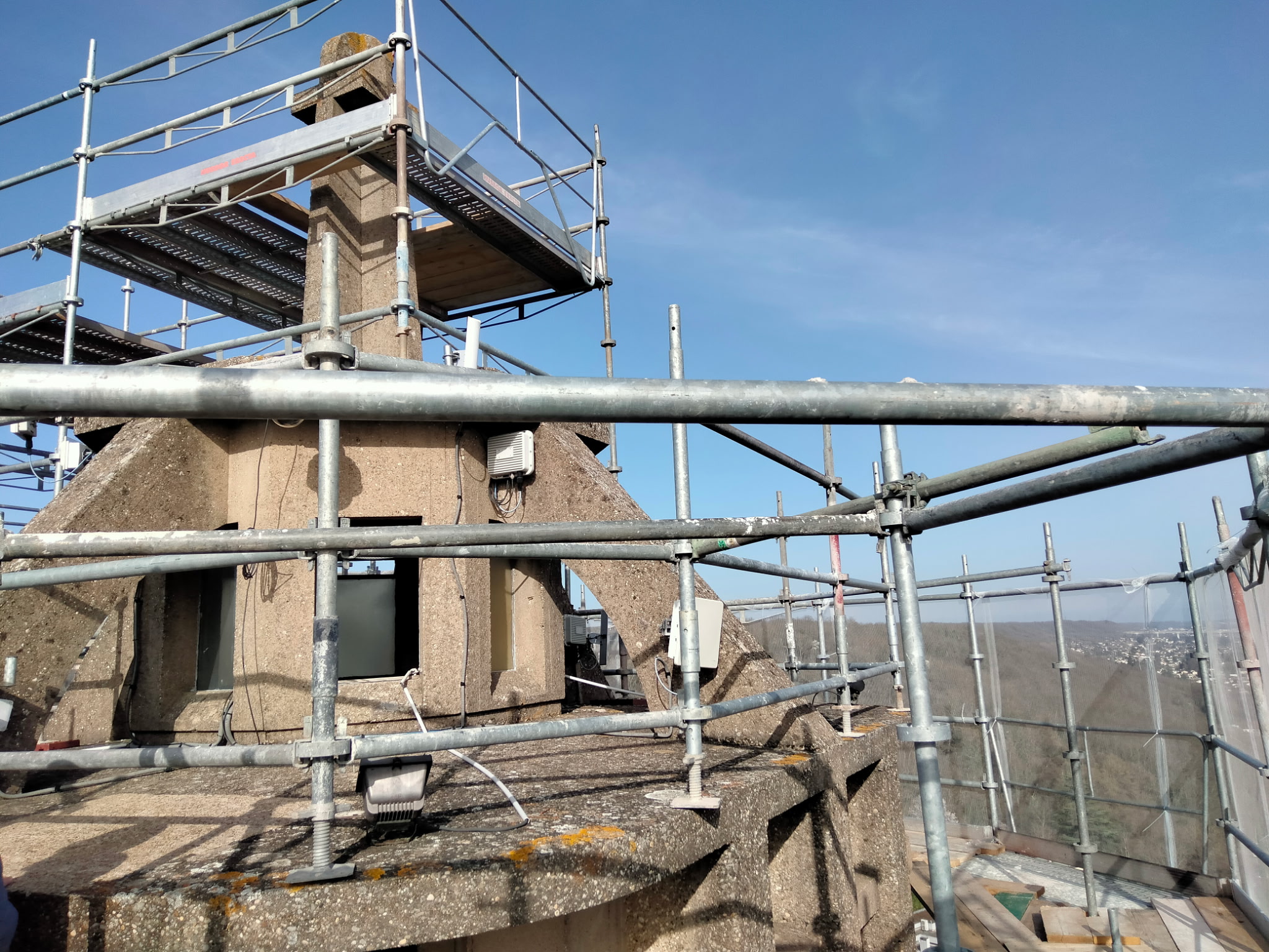 Parallèlement, le chantier progresse sur la tour du carillon, où un échafaudage est progressivement installé. Cette structure permettra d’effectuer des travaux de nettoyage, de retrait des mousses et de traitement du monument, afin d’en assurer la durabilité. L’instrument du carillon est quant à lui entièrement protégé pour préserver ses qualités acoustiques pendant toute la durée des travaux.