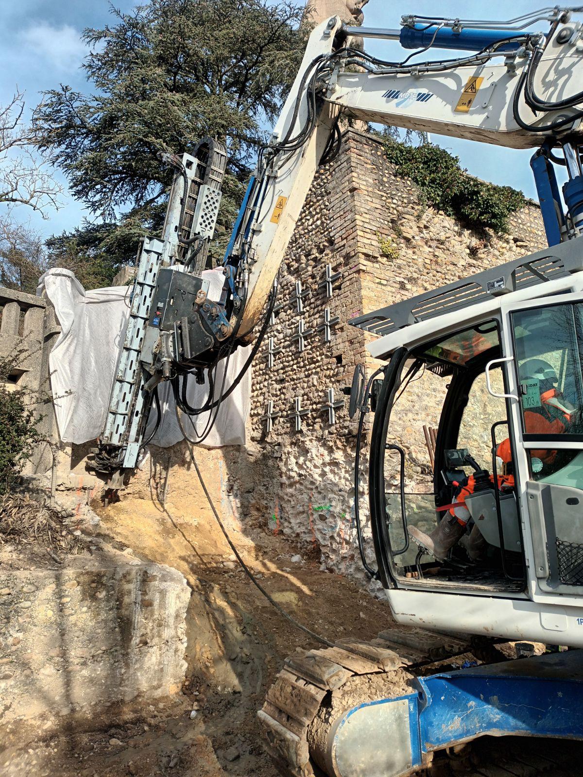 Dans ce cadre, les équipes de MDTS interviennent sur des travaux de confortement et de reprises en sous-œuvre d’un escalier monumental ainsi que des remparts, nécessaires à l’installation future d’un ascenseur. Ce type d’intervention, réalisé dans un environnement contraint, mobilise des techniques spécifiques telles que les micropieux, les ancrages et le béton projeté en passes alternées.